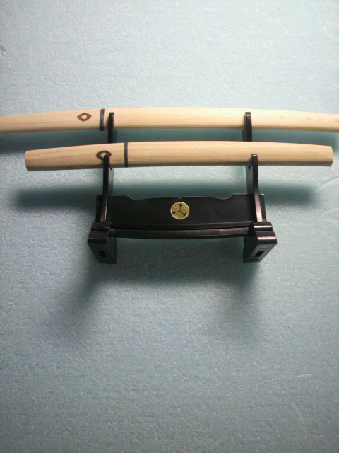 刀や短刀に心癒される方(^-^)b必見です!最長20cmのミニチュア*ペーパ-ナイフです、机の上、枕元、床の間に飾って見ては、いかがでしょう、(大刀、小刀、刀掛)セットで1470円です、来店お待ちしてます(*´∇`*)